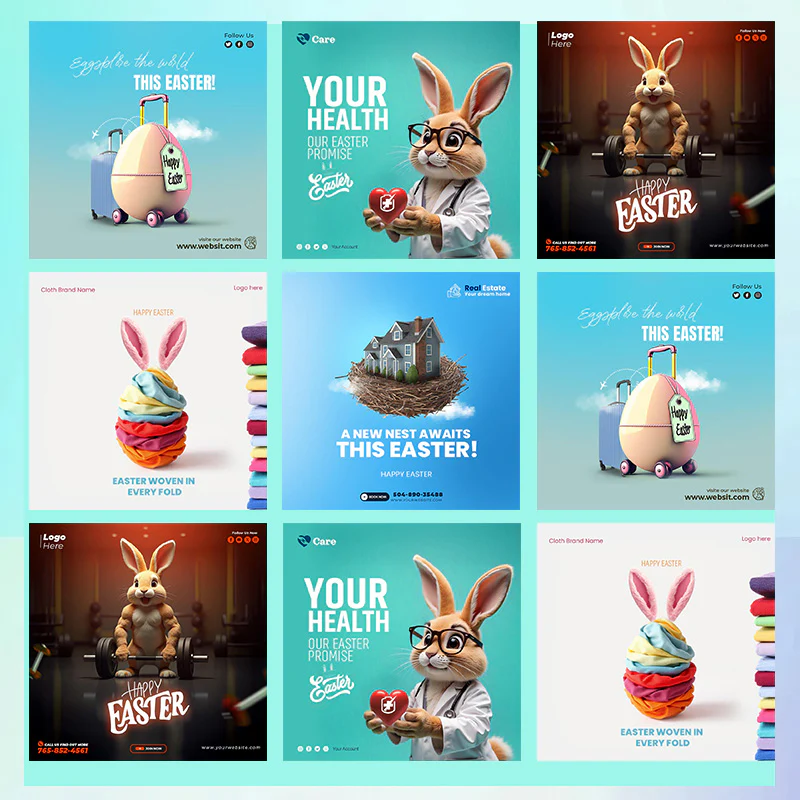 - Themes include traditional crosses, floral elements, Easter bunnies, and modern spiritual concepts – perfect for brands, churches, designers, or social media managers